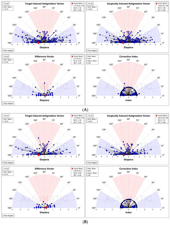 - Alpins, N.A.; Goggin, M. Practical astigmatism analysis for refractive outcomes in cataract and refractive surgery. Surv. Ophthalmol. 2004, 49, 109–122. [Google Scholar] [CrossRef] [PubMed]