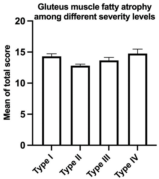 Mean comparison of gMFA using the total score among different FFP classifications. Mean ± standard error of the mean. There was no significant intraclass difference in the total fatty atrophy score observed across type-I to type-IV FFP.