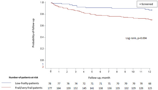 | Total N = 255 | Frail/Very Frail Patients N = 177 | Low-Frailty Patients N = 78 | p-Value | |
