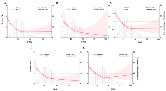 3.4. The Dose–Response Association between PWR and Prevalent CKD