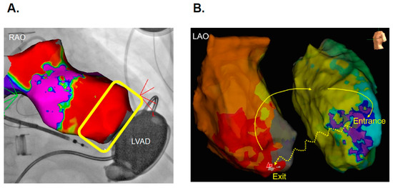 - Liang, J.J.; Canterbury, A.; Kancharla, K.; Santangeli, P. Catheter and surgical ablation for ventricular tachycardia in patients with left ventricular assist devices. Heart Rhythm. 2023, 20, 927–932. [Google Scholar] [CrossRef] [PubMed]