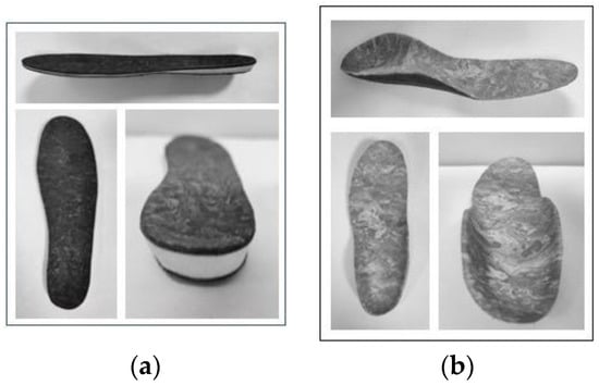 The insoles used in this study were of two types. A standard industrially manufactured insole, without customization, was used as sham (Figure 1a). The custom-made insoles (PRO-STEP, Poliortopedia, Brescia, Italy) were produced from the foot cast of the patient and then molded to fit best (Figure 1b). Both types of insoles had the same outer coating to be visually indistinguishable.
