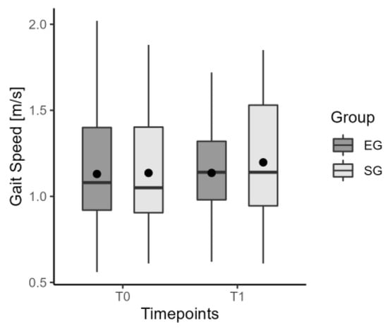 The values of median, mean, and quartiles of gait speed in EG and SG for the immediate effect.
