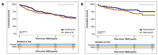 APA StyleAusbuettel, F., Barth, S., Chatzis, G., Sassani, K., Fischer, D., Weyand, S., Mueller, J., Schuett, H., Schieffer, B., Luesebrink, U., & Waechter, C. (2023). Sex-Specific Disparities in Outcomes of Transcatheter Edge-to-Edge Repair for Mitral Regurgitation: A Multicenter “Real-World” Analysis. Journal of Clinical Medicine, 12(23), 7231. https://doi.org/10.3390/jcm12237231