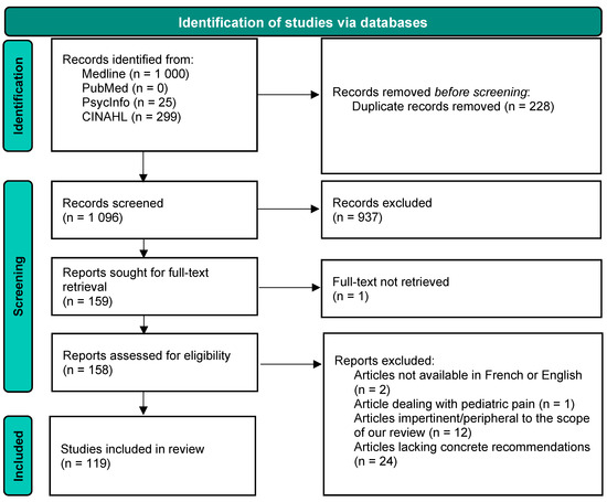APA StyleGodbout-Parent, M., Spilak, T., Pagé, M. G., Choinière, M., Dassieu, L., De Clifford-Faugère, G., & Lacasse, A. (2023). The Calm after the Storm: A State-of-the-Art Review about Recommendations Put Forward during the COVID-19 Pandemic to Improve Chronic Pain Management. Journal of Clinical Medicine, 12(23), 7233. https://doi.org/10.3390/jcm12237233