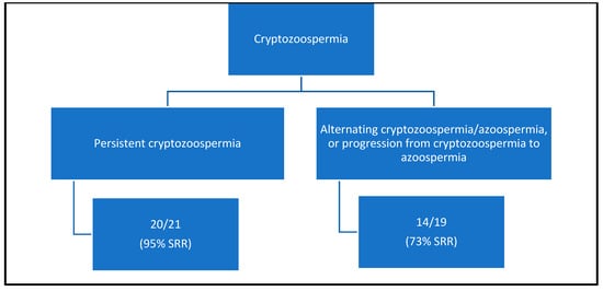 - Kaiyal, R.S.; Cannarella, R.; Kuroda, S.; Parekh, N.V.; Vij, S.C.; Lundy, S.D. Clinical outcomes of cryptozoospermic patients undergoing surgical sperm retrieval. Front. Urol. 2023, 3, 1160122. [Google Scholar] [CrossRef]
