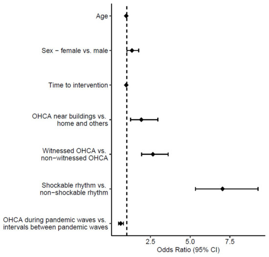 - Park, J.H.; Song, K.J.; Do Shin, S.; Hong, K.J. The impact of COVID-19 pandemic on out-of-hospital cardiac arrest system-of-care: Which survival chain factor contributed the most? Am. J. Emerg. Med. 2023, 63, 61–68. [Google Scholar] [CrossRef]