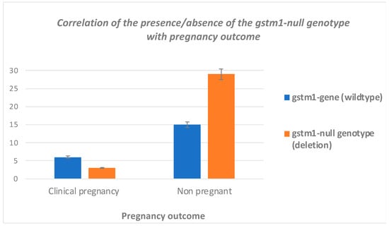 Correlation of the presence/absence of the GSTM1-null genotype with pregnancy outcome.