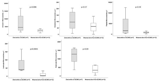 - Siegel, P.M.; Hentschel, D.; Bojti, I.; Wengenmayer, T.; Helbing, T.; Moser, M.; Duerschmied, D.; Trummer, G.; Bode, C.; Diehl, P. Annexin V positive microvesicles are elevated and correlate with flow rate in patients receiving veno-arterial extracorporeal membrane oxygenation. Interact. Cardiovasc. Thorac. Surg. 2020, 31, 884–891. [Google Scholar] [CrossRef]