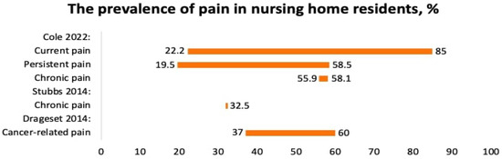 Drageset et al. (2014) reported the prevalence of cancer-related pain in nursing home residents [26]. The prevalence of pain varied from 37 to 60%.