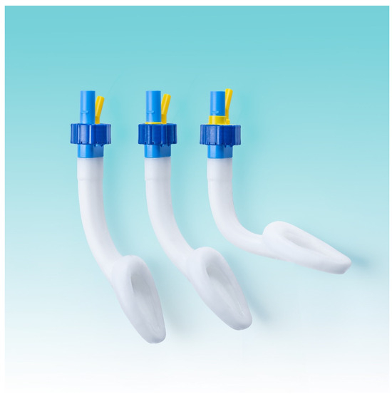 Singularity™ Air laryngeal masks are available in two adult sizes. According to the manufacturer’s instructions, size 4 is designed for patients weighing 70 kg or less, and size 5 is for patients > 70 kg. The laryngeal masks were prepared for use by emptying the cuff using a syringe, lubricating the outer curvature with a sterile gel (Instillagel; FARCO-PHARMA, Köln, Germany), and slightly bending the shaft.