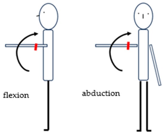 - Oosterwijk, A.M.; Nieuwenhuis, M.K.; van der Schans, C.P.; Mouton, L.J. Shoulder and elbow range of motion for the performance of activities of daily living: A systematic review. Physiother. Theory Pract. 2018, 34, 505–528. [Google Scholar] [CrossRef]