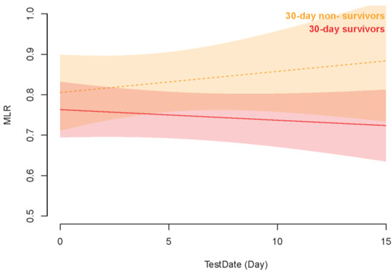 Furthermore, we investigated the association between early changes in MLR and 30-day mortality. A generalized additive mixed model (GAMM) was employed to evaluate the early changes in MLR over time between survivors and non-survivors, using both crude and fully adjusted models. The GAMM is particularly applied to analyze repeated measurements, especially when measurement intervals are irregular and some data are missing. Data analysis were conducted using R software version 4.2.2. Statistical significance was defined as a two-tailed p value less than 0.05.