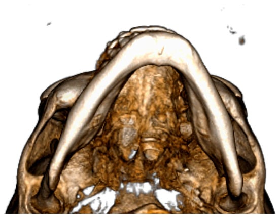 All patients underwent a preoperative axial thin-cut (0.6 mm) Cone-Beam Computed Tomography (CBCT) scan. The data were recorded in a generic Digital Imaging and Communications in Medicine (DICOM) format and transferred to Dolphin Imaging Software 12.0, a software dedicated to orthognathic Virtual Surgical Planning (VSP). The software reformats the DICOM images into 3D STL files []. Patients were photographed before surgery and at each postoperative visit from frontal, oblique, basal, and lateral views.