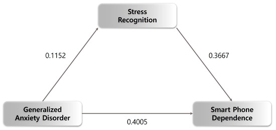 Mediating effect of stress recognition on smartphone dependence and GAD.