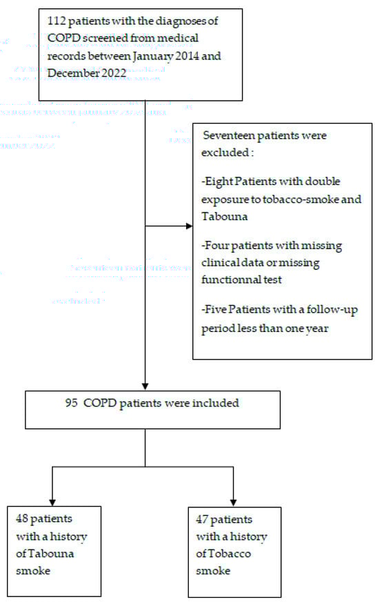 Hamdi, B.; Louhaichi, S.; Jebali, M.A.; Schlemmer, F.; Maitre, B.; Hamzaoui, A. COPD after “Tabouna” Exposure: A Distinct Phenotype in Tunisian Women? J. Clin. Med. 2023, 12, 7424. https://doi.org/10.3390/jcm12237424