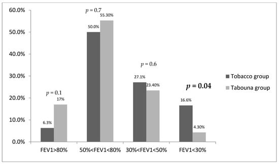 Chicago/Turabian StyleHamdi, Besma, Sabrine Louhaichi, Mohamed Aymen Jebali, Frédéric Schlemmer, Bernard Maitre, and Agnes Hamzaoui. 2023. "COPD after “Tabouna” Exposure: A Distinct Phenotype in Tunisian Women?" Journal of Clinical Medicine 12, no. 23: 7424. https://doi.org/10.3390/jcm12237424