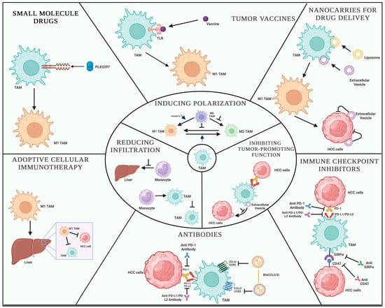 - Zheng, H.; Peng, X.; Yang, S.; Li, X.; Huang, M.; Wei, S.; Zhang, S.; He, G.; Liu, J.; Fan, Q.; et al. Targeting tumor-associated macrophages in hepatocellular carcinoma: Biology, strategy, and immunotherapy. Cell Death Discov. 2023, 9, 65. [Google Scholar] [CrossRef]