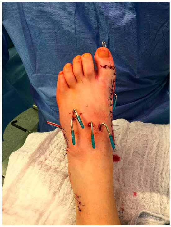 - Wilson, F.C.; Fay, G.F.; Lamotte, P.; Williams, J.C. Triple arthrodesis. A study of the factors affecting fusion after three hubdred and one procedures. J. Bone Jt. Surgery. Am. Vol. 1965, 47, 340–348. [Google Scholar] [CrossRef]