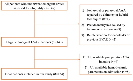 A retrospective cohort study was conducted based on a database of patients who underwent EVAR at a tertiary academic hospital with a high volume of aortic surgeries. This study was reported in accordance with the Strengthening the Reporting of Observational Studies in Epidemiology (STROBE) Statement of cohort studies [15]. The STROBE checklist is shown in Table S1. Ethical approval for this study was obtained from the Ethics Committee of West China Hospital of Sichuan University (approval number: 2023-1705).