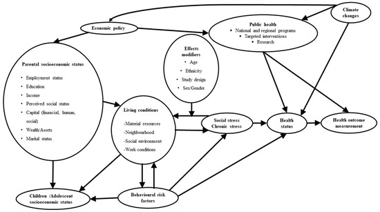 - Poulain, T.; Vogel, M.; Sobek, C.; Hilbert, A.; Körner, A.; Kiess, W. Associations Between Socio-Economic Status and Child Health: Findings of a Large German Cohort Study. Int. J. Environ. Res. Public Health 2019, 16, 677. [Google Scholar] [CrossRef]