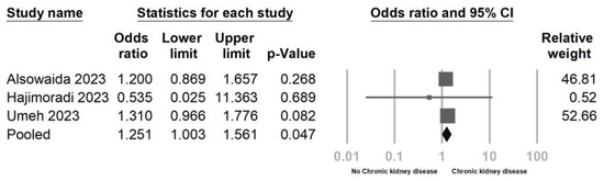 Forest plot of remdesivir-induced bradycardia associated with chronic kidney disease (CKD) [23,26,27].