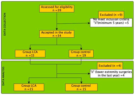 The sample size was calculated by taking as reference the means of 2 normal populations with equal standard deviations of 0.15. The minimum needed to reach a power of 0.95 and a bilateral α level of 0.05 with 2 groups to detect a difference of 0.2 units for a Student’s t test for independent samples. A total of 30 participants of fifteen subjects per group was required.