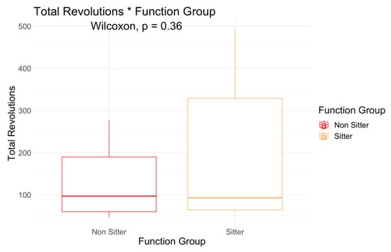 ATEND score was significantly associated with a total revolution of 3.18 (p = 0.022). When sitters and non-sitters were evaluated as distinct cohorts, specific outcome measures revealed notable differences. Non-sitters demonstrated a significant positive correlation between total revolutions and ATEND (p = 0.025), unlike sitters, where each point increase was associated with a 3.91 increase in revolutions. For non-sitters, higher EK2 scores (less function) were significantly associated with a decrease in total revolutions 6.31 (p = 0.002) while sitters showed a decrease of 3.82 (p < 0.001).