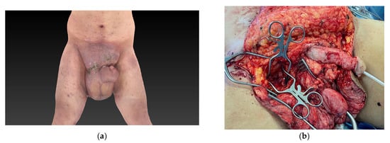 While rare, penoscrotal lymphedema (PL) is typically endemic to Africa and Asia and is caused by lymphatic obstruction due to filariasis (typically Wuscheria bancrofti) or bacterial infection [1,2,3,4]. Other secondary causes include tumors, lymphadenectomy, radiotherapy, or disorders of the fluid balance, such as heart or kidney disease. Rarely, the edema can present as a symptom of a primary lymphatic malformations (i.e., Meigs and Milroy’s disease) [5,6,7]. Moreover, during the last two decades, an increasing number of articles have reported of cases with no clear etiology, termed idiopathic penoscrotal lymphedema (IPL) [5,8].