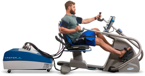 Figure 2. VASPER device (by VASPER Systems LLC). - A total of 10 people performed VASPER Systems LLC training using occlusion without cooling—the pressure in the occlusion cuffs was 10 mmHg lower than the systolic pressure (Group OCC)—age [years]: 23.22 ± 0.44; body height [cm]: 169.83 ± 9.81; body mass [kg]: 66.31 ± 11.77.