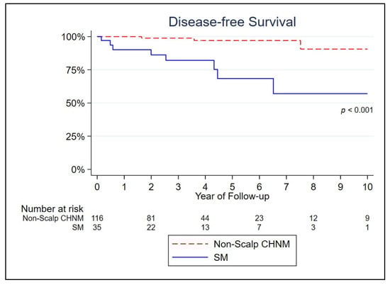 | Scalp Melanoma (n = 35) | Non-Scalp CHNM (n = 117) | Total | |||||