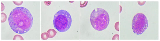 Interestingly, the diagnostic marker for VEXAS syndrome, UBA1 M41T mutation (VAF, 83.3%), was identified in a 38-year-old male patient, and we reviewed his clinical disease course. Three years prior to the diagnosis of MDS, he developed a progressive erythematous maculopapular rash accompanied by fever, myalgia, and tenderness, along with auricular chondritis and polyarthritis. At that time, the CBC showed Hb 10.6 g/dL, WBC 3.73 × 109/L, and a platelet count of 167 × 109/L. A BM examination performed due to a history of leukopenia showed normocellular marrow with no evidence of dysplasia but accompanied by granulocytic hyperplasia. Subsequently, the patient was diagnosed with relapsing polychondritis and treated with prednisolone and/or cyclosporine. During follow-up, as cytopenia worsened, the second BM examination was performed three years later. CBC showed Hb 9.5 g/dL, WBC 3.08 × 109/L, and platelets 128 × 109/L. BM examination revealed a hypercellular marrow with trilineage dysplasia, leading to the diagnosis of MDS with multilineage dysplasia according to the 2016 WHO classification. While receiving conservative treatment for MDS, the cytopenia deteriorated significantly. Six years after the diagnosis of MDS, the patient underwent allogeneic hematopoietic stem cell transplantation, and disease-related symptoms improved with complete engraftment. In the pre-transplant bone marrow examination, characteristic findings of VEXAS syndrome, specifically cytoplasmic vacuolation of myeloid precursor cells, were observed (Figure 2).