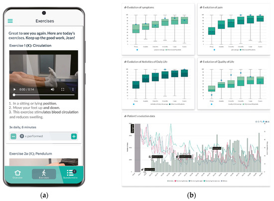 All data collection was facilitated via the moveUP® application (moveUP®, Brussels, Belgium), which is registered as a medical device. This application operates on a smart virtual platform designed for digital monitoring, utilizing both objective and subjective patient data. The platform consists of two main components: a patient-facing mobile application and a web-based dashboard utilized by the care provider.