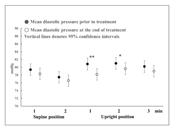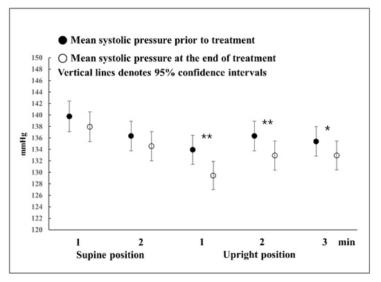 However, during standing, when the VSR is overworking, the sympathetic nerve works toward excitation to increase the overall blood pressure; for this reason, it is believed that there is a statistically significant difference in blood pressure before and after treatment.