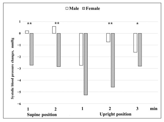 24]. Regarding the average age of females, 52.5 years in this study, the difference in the change in blood pressure between the sexes was partially explained. A previous study on the otolith organ and the autonomic nervous system by Aoki et al. [
