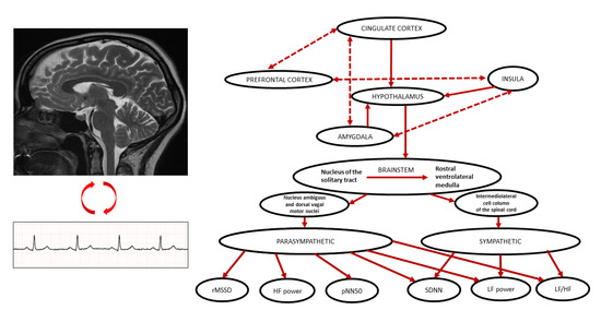 The relationship between brain activity in different regions and HRV can be evaluated using functional magnetic resonance imaging (fMRI). This method shows time-varying regional changes in brain metabolism, which can arise from different task-induced cognitive and emotional state changes or be the result of changes in the brain during the resting state [36]. Changes in blood flow and blood oxygenation in the brain are closely linked to neural activity and are called “hemodynamic responses.” Neuronal activity causes an increase in local cerebral blood flow (CBF) and oxygenated blood displaces deoxygenated blood and generates the blood oxygen level dependent (BOLD) MRI signal. Importantly, both vascular and neural mechanisms underlie the BOLD signal [37]. Therefore, in addition to reflecting neural activity, the BOLD signal also reflects changes in other hemodynamic responses such as CBF, cerebral blood volume and the cerebral metabolic rate.