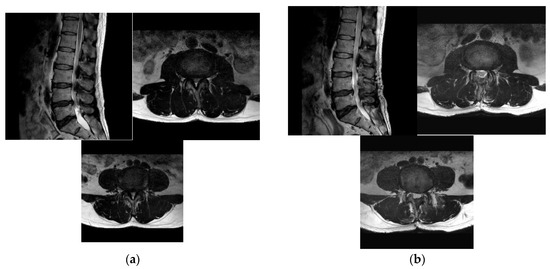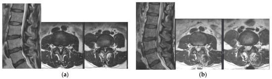 - Schizas, C.; Theumann, N.; Burn, A.; Tansey, R.; Wardlaw, D.; Smith, F.W.; Kulik, G. Qualitative grading of severity of lumbar spinal stenosis based on the morphology of the dural sac on magnetic resonance images. Spine 2010, 35, 1919–1924. [Google Scholar] [CrossRef]
