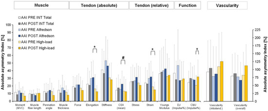 - Bohm, S.; Mersmann, F.; Marzilger, R.; Schroll, A.; Arampatzis, A. Asymmetry of Achilles tendon mechanical and morphological properties between both legs. Scand. J. Med. Sci. Sports 2015, 25, e124–e132. [Google Scholar] [CrossRef]