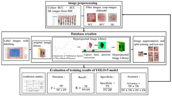 Huang, H.-Y.; Hsiao, Y.-P.; Mukundan, A.; Tsao, Y.-M.; Chang, W.-Y.; Wang, H.-C. Classification of Skin Cancer Using Novel Hyperspectral Imaging Engineering via YOLOv5. J. Clin. Med. 2023, 12, 1134. https://doi.org/10.3390/jcm12031134