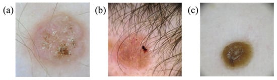 - Haenssle, H.A.; Fink, C.; Toberer, F.; Winkler, J.; Stolz, W.; Deinlein, T.; Hofmann-Wellenhof, R.; Lallas, A.; Emmert, S.; Buhl, T. Man against machine reloaded: Performance of a market-approved convolutional neural network in classifying a broad spectrum of skin lesions in comparison with 96 dermatologists working under less artificial conditions. Ann. Oncol. 2020, 31, 137–143. [Google Scholar] [CrossRef]