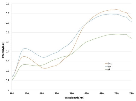 - Dicker, D.T.; Lerner, J.; Van Belle, P.; Guerry, t.D.; Herlyn, M.; Elder, D.E.; El-Deiry, W.S. Differentiation of normal skin and melanoma using high resolution hyperspectral imaging. Cancer Biol. Ther. 2006, 5, 1033–1038. [Google Scholar] [CrossRef]