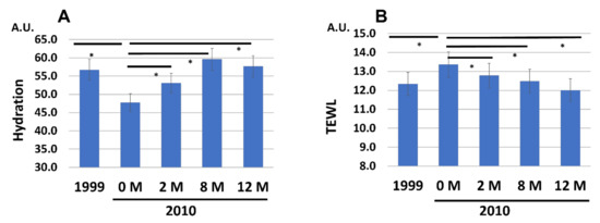 | TEWL | 12.34 ± 3.83 | 13.36 ± 3.18 | <0.01 |