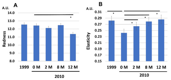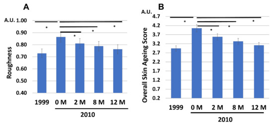 3.1. Aggravation of Skin Aging Parameters from 1999 to 2010
