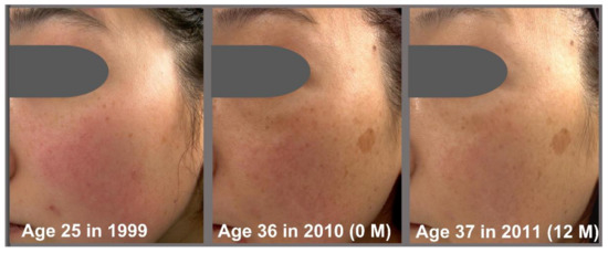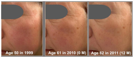 Miyamoto, K.; Inoue, Y.; Yan, X.; Yagi, S.; Suda, S.; Furue, M. Significant Reversal of Facial Wrinkle, Pigmented Spot and Roughness by Daily Application of Galactomyces Ferment Filtrate-Containing Skin Products for 12 Months—An 11-Year Longitudinal Skin Aging Rejuvenation Study. J. Clin. Med. 2023, 12, 1168. https://doi.org/10.3390/jcm12031168