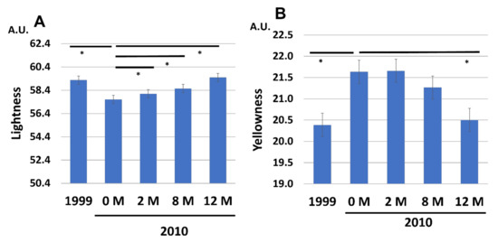 | Yellowness | 20.39 ± 1.93 | 21.63 ± 1.93 | 0.028 |