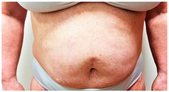 Considering her oncologic anamnesis, we initially treated her with topical treatment in combination with narrowband UVB phototherapy. However, the condition did not improve. Systemic immunosuppressive therapy was considered unsafe due to the previous malignancies. After discussion with her oncologist, we initiated treatment with dupilumab in a standard dosage regimen. The patient responded very well to the treatment (Figure 2); she has been currently treated with dupilumab for 2.5 years, her EASI score is 8, her subjective pruritus has decreased to 1, and her DLQI score has improved to 3. The patient is very satisfied with the results of dupilumab treatment. To date of this publication, no adverse events have occurred. The patient is following up with her oncologist, and surveillance imaging are negative to date.