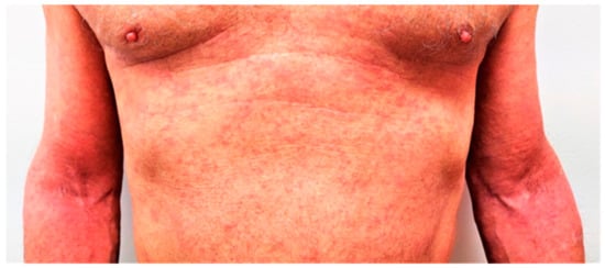 - Qiu, Y.; Ali, K.; Lou, H.; Shan, J.; Wu, L. Successful Treatment of Atopic Dermatitis with Dupilumab in a Patient with Non-Hodgkin’s Lymphoma. Acta Derm.-Venereol. 2022, 102, adv00625. [Google Scholar] [CrossRef] [PubMed]