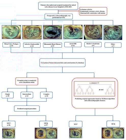Therefore, our study attempted to create a predictive model using the XGBoost algorithm based on the assessment of the mitral valve apparatus in preoperative echocardiography, such as the annulus, leaflets, and sub-valvular structures. Consequently, the model provides a simplified, feasible, and highly efficient assessment of the surgical options (repair or replacement) for patients with mitral valve disease.