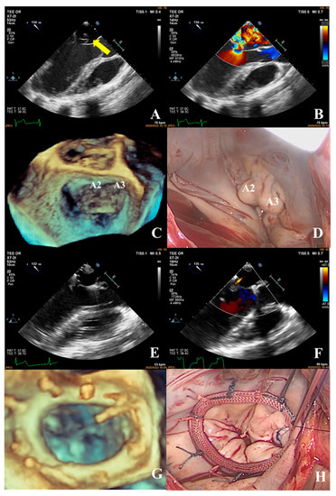 - Gheorghe, L.L.; Mobasseri, S.; Agricola, E.; Wang, D.D.; Milla, F.; Swaans, M.; Pandis, D.; Adams, D.H.; Yadav, P.; Sievert, H.; et al. Imaging for Native Mitral Valve Surgical and Transcatheter Interventions. JACC Cardiovasc. Imaging 2021, 14, 112–127. [Google Scholar] [CrossRef]