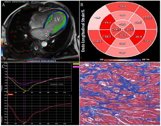 - Shenoy, C.; Romano, S.; Hughes, A.; Okasha, O.; Nijjar, P.S.; Velangi, P.; Martin, C.M.; Akcakaya, M.; Farzaneh-Far, A. Cardiac Magnetic Resonance Feature Tracking Global Longitudinal Strain and Prognosis After Heart Transplantation. JACC Cardiovasc. Imaging 2020, 13, 1934–1942. [Google Scholar] [CrossRef]